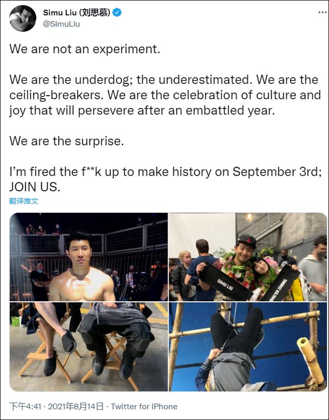 日前 the walt disney company 執行長 bob chapek 於會議上稱將《尚氣與十環傳奇》於上映 45 天後才放上串流是個有趣的「實驗」,為此該電影主角 simu liu 劉思慕昨日於 twitter 公開表達自.